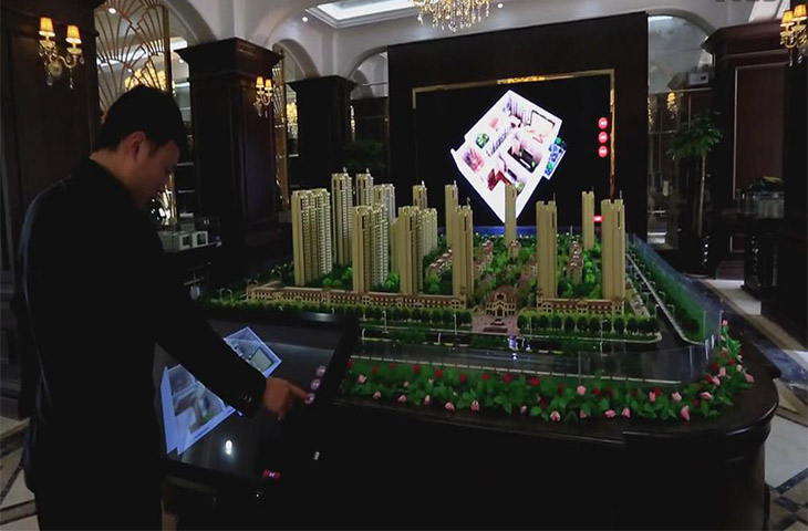 房地產(chǎn)數(shù)字沙盤配備有完整的數(shù)字多媒體系統(tǒng),包括有互動(dòng)系統(tǒng)、燈光控制系統(tǒng)、多媒體設(shè)備、動(dòng)畫宣傳片等,把樓盤的詳細(xì)信息展現(xiàn)給客戶。如樓盤周邊環(huán)境、景觀、商業(yè)配套等,利用數(shù)字技術(shù)把更真實(shí)的場(chǎng)景展現(xiàn)給客戶,是一種全新的呈現(xiàn)方式,讓客戶感覺身臨其境,更加人性化,更貼近消費(fèi)者心理。