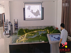 立體數字沙盤又稱為立體電子沙盤,是屏幕+實體沙盤模型+燈光+語音解說的結合體。屏幕中的內容是利用三維動畫技術所制作而成再利用投影機投射到屏幕中,想宣傳片樣,再結合實體沙盤模型共同展現。在屏幕中的三維內容展現時,實體沙盤模型利用燈光效果來回應所展現的內容,與它融合在起。立體數字沙盤有兩種方法實現互動功能,是利用觸控體機來實現;二是在實體沙盤模型中安裝感應設備,用激光筆來點擊沙盤實體互動。