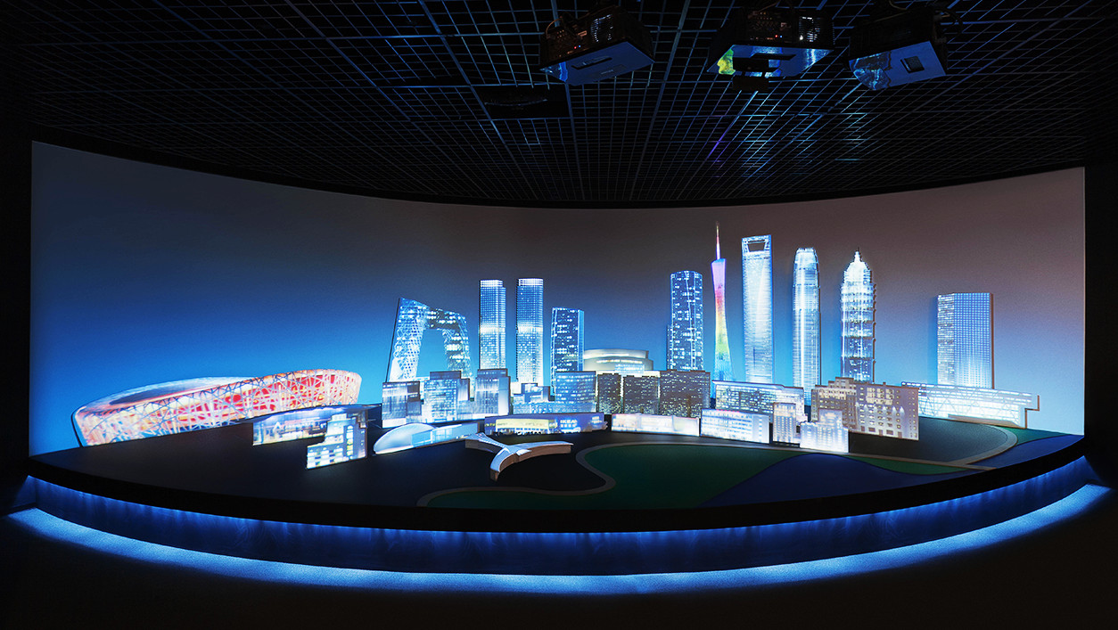 像每一類的火米數字沙盤一樣,火米沉浸式規劃沙盤,依然是新一代的規劃館內最流行的形式,搭配裸眼3D立體影片,